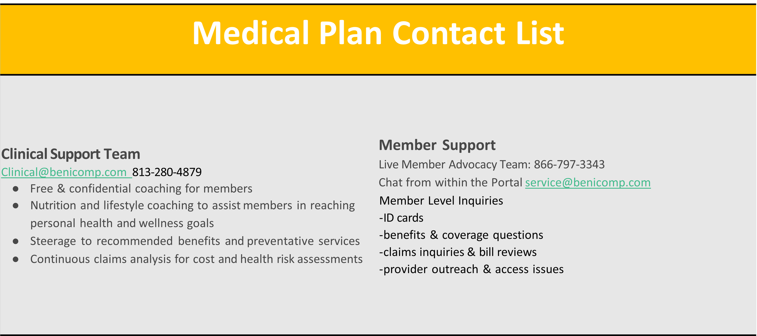 Medical (BeniComp) Contacts